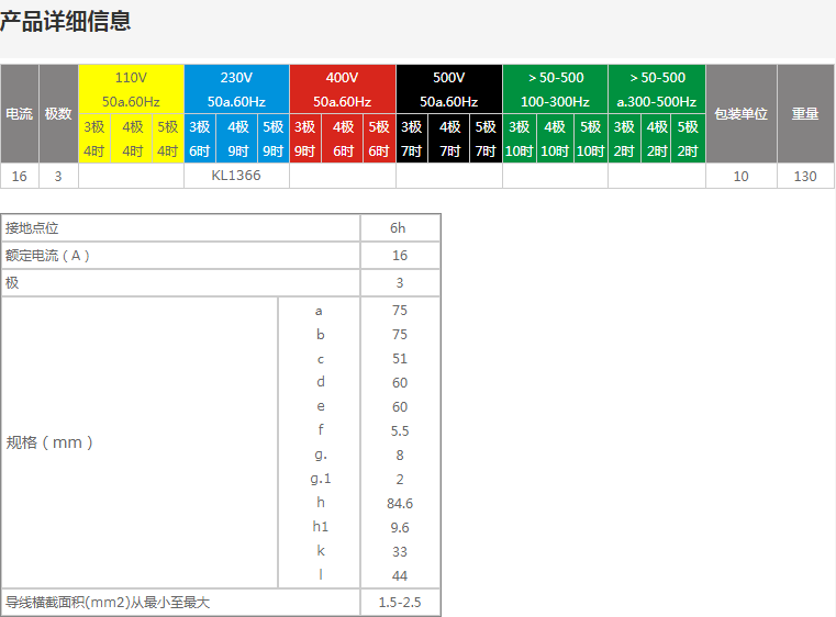 产品规格: 16A/3P/6H/230V/IP44